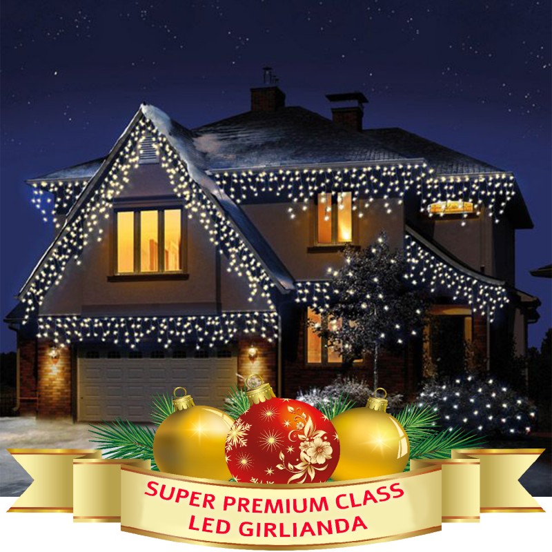 SUPER PREMIUM CLASS girlianda atitinka IP44 standartą o tai reiškia, kad ją galima naudoti lauke (nardinti į vandenį draudžiama). Šio tipo girliandos yra atsparios lietui ir sniegui, todėl gali būti naudojamos lauke atvirose vietose kaip lauko girliandos.